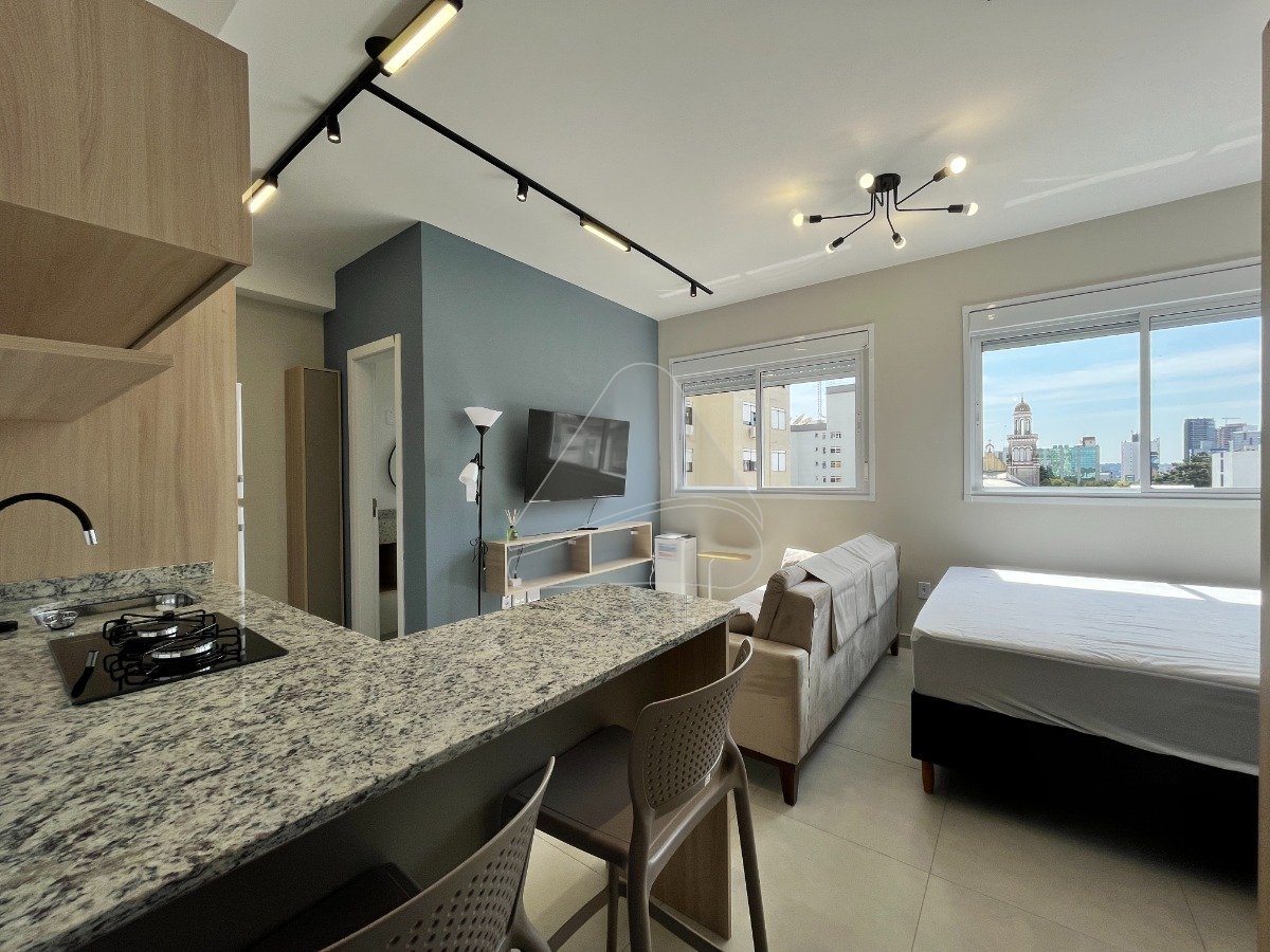 Charmosa kitnet disponível para alugar no Centro de Passo Fundo. Com uma cozinha americana integrada e ambiente moderno com forro de gesso, este espaço é ideal para quem busca conforto e praticidade. O prédio conta com infraestrutura completa, incluindo elevadores, câmeras de vigilância e gás central. Não perca a oportunidade de viver em um lugar seguro e bem localizado!