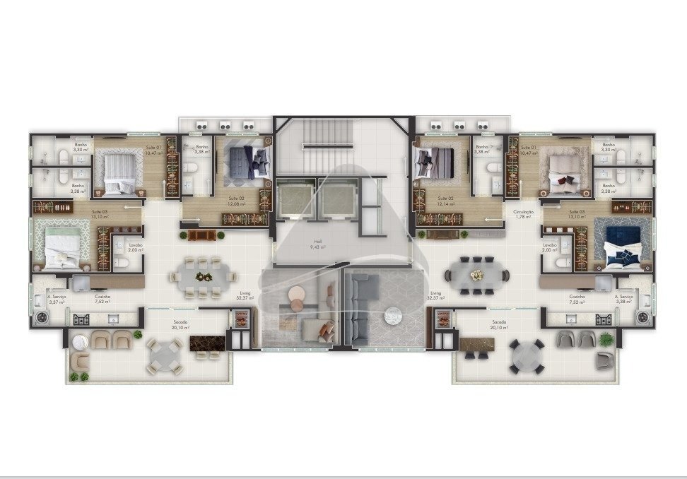 O EMPREENDIMENTO - Hall de Entrada Decorado; - Fachada com arquitetura contemporânea; - Área de lazer mobiliada e decorada; - Revestimento externo em Textura e Grafiato - Pontos para medidores individuais de água, luz e gás - Pisos em porcelanato - Porteiro eletrônico e portões automatizados - Iluminação com sensor de presença nas áreas comuns - 02 Elevadores de última geração - Portas laqueadas e com ferragem em aço inox - 02 aptos por andar OS APARTAMENTOS - Living integrado - 129 metros quadrados de área privativa - Ampla sacada com churrasqueira - 03 suítes - Lavabo / Area de serviço /- Cozinha - 02 vagas de garagem individuais - Infraestrutura para internet - Teto rebaixado em gesso - Espera para ar-condicionado tipo "split* - Tubulação para água quente
