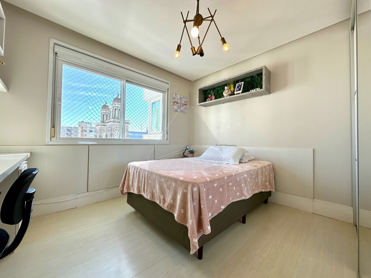 Se a localização é fundamental, esse imóvel é para você, está em uma das esquinas mais valorizadas da cidade, esquina com a Praça Marechal Floriano e onde o comércio possui uma grande representatividade. A estrutura condominial conta com portaria trazendo mais segurança e facilidade no dia-a-dia, dois elevadores, um salão de festas amplo e com terraço aberto. O apartamento possui uma bela distribuição interna, espaço social aconchegante, espaçoso e todo ele integrado (sala de estar, jantar e espaço gourmet), cozinha ampla e separada, área de serviço, uma suíte com a banheira hidro estilosa trazendo mais charme para a sua a vida. São 03 dormitórios (uma suíte), banheiro social. Boa posição solar. Já contempla todos os móveis sob medida.