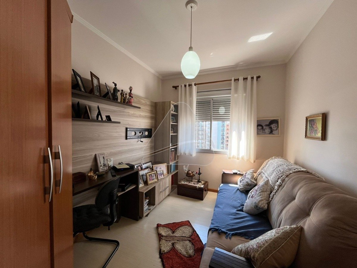 Rua Bento Gonçalves, junto ao Banco do Brasil e Avenida Brasil, próximo ao Banco Banrisul, farmácias, faculdade Anhanguera, mercados e comércio em geral. Excelente apartamento no décimo andar de frente, living com sacada e churrasqueira, lavabo, 3 dormitórios sendo 1 suíte com hidromassagem, cozinha (ficam balcões fixos) e vaga de garagem.