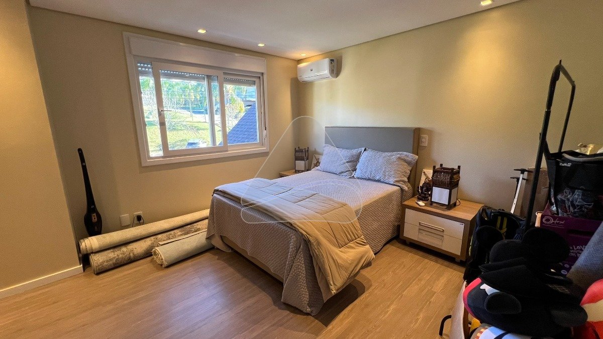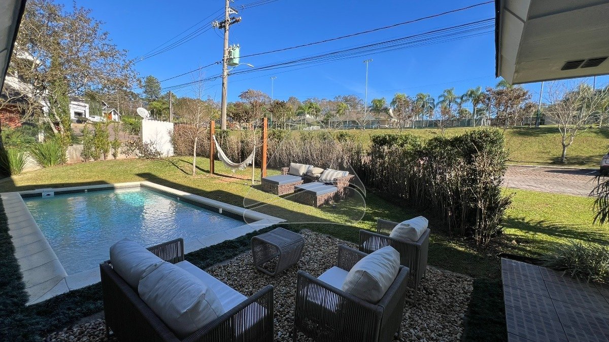 Viver em um condomínio em meio a natureza, com piscina, lago, quadras de esportes, salão de festas, academia, enfim com uma infraestrutura de lazer completa, e em meio a isso uma Bela residência, com arquitetura contemporânea, toda mobiliada sob medida, dividida em 3 suítes + closet, lavabo, home office, sala de estar e jantar integradas, cozinha com espaço gourmet, uma varanda gourmet com churrasqueira para contemplar a piscina privativa, além de uma ampla garagem com capacidade para 2 veículos com tomada para carro elétrico. É muito espaço e conforto aliado a segurança e comodidade que só um condomínio fechado pode oferecer. Agende agora mesmo uma visita e permita-se ficar encantado com esta linda propriedade.