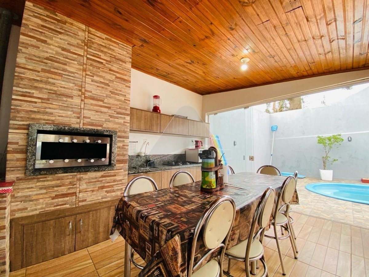 Casa bem espaçosa de 4 dormitórios, sendo 3 suítes, vaga de garagem para 3 veículos, conta com ambientes bem espaçosos, sala de estar com escritório sob medida, cozinha fechada com móveis sob medida, área de serviço separada. Na parte de trás conta com um amplo salão de festas com churrasqueira e fogão campeiro, piscina e um amplo pátio com espaço para reunir amigos e família.