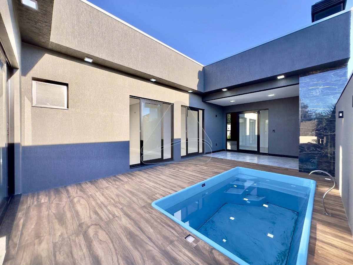 Esta residência, com ótimo padrão construtivo, é nova e nunca foi habitada. O imóvel oferece o equilíbrio perfeito entre arquitetura contemporânea, espaços amplos e acabamentos de qualidade. Localizada em um bairro valorizado, foi projetada para proporcionar conforto, integração e praticidade em todos os ambientes. São três suítes, incluindo uma máster com closet, além de sala de estar com pé-direito duplo, cozinha americana moderna e espaço gourmet integrado à área externa. Grandes aberturas em vidro permitem ótima iluminação natural e conexão com o jardim e a piscina com cascata, criando um espaço perfeito para momentos de lazer. O imóvel conta ainda com garagem coberta para dois carros (com possibilidade de mais duas vagas descobertas), jardim projetado e fachada marcante com detalhes em vidro e madeira. Uma excelente oportunidade para quem busca um lar sofisticado, funcional e totalmente novo. Agende sua visita e conheça todos os detalhes.