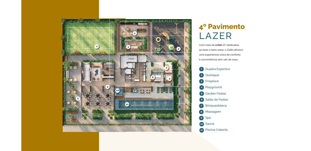 O Zaith é um convite para viver com leveza, conforto e propósito. Um lugar onde cada detalhe foi pensado para valorizar o seu tempo e transformar a rotina em bem-estar. Com arquitetura moderna, ambientes que inspiram e uma localização privilegiada, o empreendimento une praticidade, sofisticação e qualidade de vida em um só endereço.